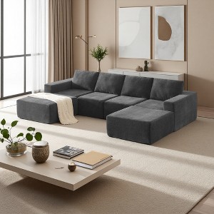 - Minimalist Modular Design This modern U-shaped sectional sofa features a clean, minimalist aesthetic with straight-cut edges and elegant lines. Upholstered in premium chenille fabric, it brings a timeless, sophisticated charm to any living space.