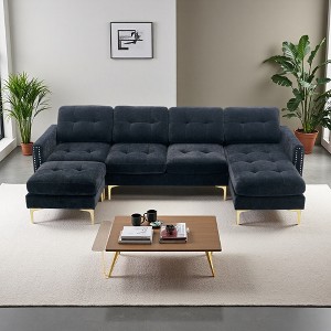 110" Velvet L-Shaped Convertible Sectional Sofa with Ottoman