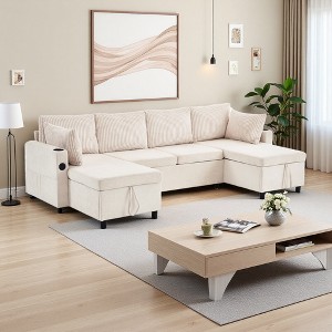 111.8" U-Shaped Sectional Sofa Bed with Storage & USB