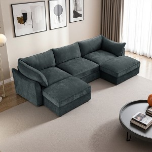 112.6" Chenille U-Shaped Modular Sectional Sofa with Storage Ottomans & Drawers Under Each Seat