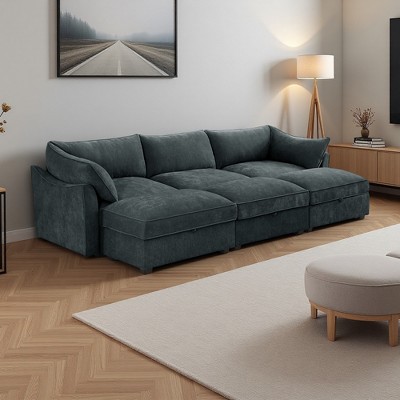 112.6" Chenille U-Shaped Modular Sectional Sofa with Storage Ottomans & Drawers Under Each Seat