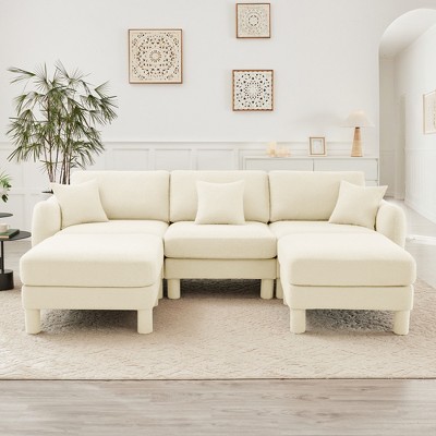 - ¡¾Spacious & Versatile Design¡¿Size 114"L x 54.5"W x 33"H, this sectional couch offers ample space for lounging or sleeping. Its U-shaped couch design is ideal for modern living rooms, providing both comfort and functionality.