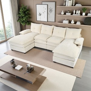 115.4" Chenille U-Shaped Modular Sectional Sofa with Adjustable Armrests