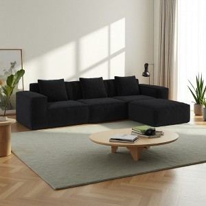 118" Corduroy Velvet Modular 3-Seater Sectional Sofa with Footrest