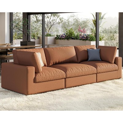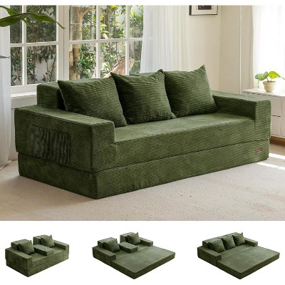 119.7" Green Corduroy Modular Sofa with Memory Foam, Deep Seat Couch with 2 Pillows for Living Room or Apartment -3irtyhousy