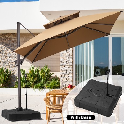 11FT Square Double Top Cantilever Umbrella Outdoor 360° Rotation 6 Heights Adjustable Offset Umbrella with Metal Pole Cantilever with Base