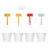 - Four 4.37-inch by 4.25-inch powder-coated metal pails