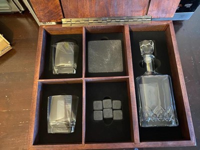 [This review was collected as part of a promotion.] This whiskey box comes with everything you need! The box is cool, and everything looks amazing. There is also a spot for you to put a whiskey bottle. It looks great on the bar for decorations as well. Great conversation starter.