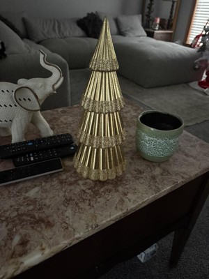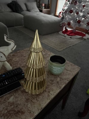 I couldn’t be happier with this 12" Christmas Gold Tree from Wondershop™! The foil finish is vibrant and eye-catching, and the glittered trim adds just the right amount of sparkle without being messy. It looks elegant and festive on my countertop, perfectly complementing my holiday décor. The tree has a sturdy build and the tiered design gives it a chic, modern look while still feeling traditional. It’s the perfect size, not too big to be overpowering, but large enough to make a statement. I’ve received several compliments already! If you’re looking for a stylish and affordable way to add a little holiday magic to your home, this is it. Highly recommend!