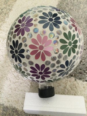12" Colorful Daisy Glass Gazing Globe with Mosaic Flower - Alpine Corporation: Outdoor Decorative Object, No Battery Required