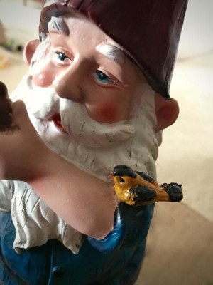 [This review was collected as part of a promotion.] The newest resident of our backyard lives just on the edge of our patio, right near our bird feeders. He is armed and ready to chase away any critter that tries to bother our backyard birds, and he takes his job very seriously. But as vigilant and protective as he is, he is also very cute! He is brightly colored and sports some very realistic details, like the leftover bit of his belt or the adorable yellow bird on his shoulder. This funny little guy is much smaller than I expected he'd be, and he is very lightweight. I do wish he were a few inches taller and maybe a little heavier, but as long as he stays put and isn't knocked over by the wind or pushed around by bully squirrels, I'll be happy. All in all, I am delighted to finally have my own garden gnome! Now I just need to figure out what this dude's name is. Definitely something as magical and whimsical as he is!