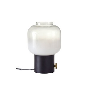 The Lewis Table Lamp is the perfect accent piece for the bedside or living room. A beautiful glass shade has a white color on the bottom and fades into a clear glass on the top. A large, round knob switch on the matte black metal base turns the lamp on and off. With a compact silhouette measuring 12 inches tall, this decorative accent can also be a great addition to a bookcase or shelf. Add a subtle statement and mid-century modern pop to any space you choose.