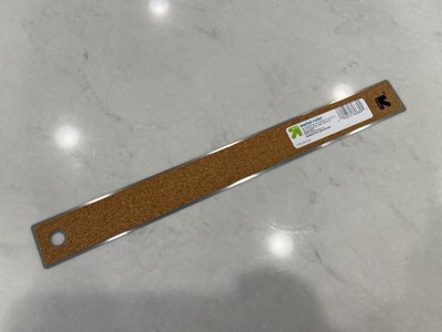 It’s a metal ruler with a cork back, great for drawing lines or geometry homework.