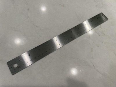 Stock up your school or office supplies with this 12 inch Metal Ruler from up&up™. Made from metal, this ruler measures up to 12 inches so you can keep it in your pencil case and measure objects using inch or cm units. The design also features a sturdy metal edge and one-hole punched center for easy storage on the wall or in a standard-size binder. Plus, all markings and numbers are engraved in black for a better read.