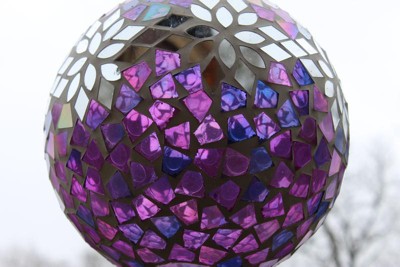 [This review was collected as part of a promotion.] I have wanted one of these for years but never really found the right one. I just love the mosaic pattern to the globe and the purple is so pretty. I like this one alot better than the solid color ones I've always seen. It was even a little bigger than I thought but thats because apparent I suck at measurements. I was a little surprised it didn't xome with a pole to mount it on but that was an easy fix