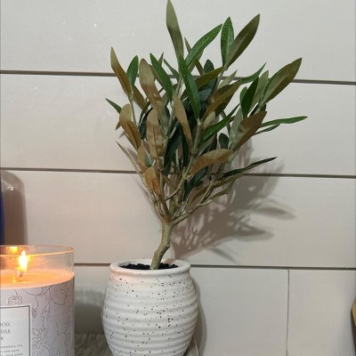 Add a touch of greenery to your home decor with this Olive Artificial Plant from Threshold™ designed with Studio McGee. This faux plant features natural-looking olive leaves on various branches originating from a single stem. Plus it comes in a white cement pot showcasing a ribbed design with speckles for an earthy look. Display this 12-inch-tall faux plant on your tabletop, mantel or entryway table for easy display.