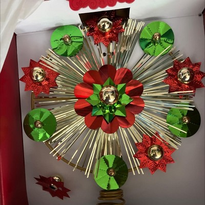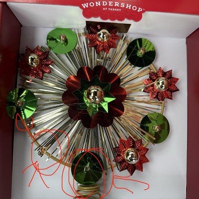 12" Unlit Gold Tinsel Burst with Red and Green Foil Bursts Christmas Treetop with Coil - Wondershop™