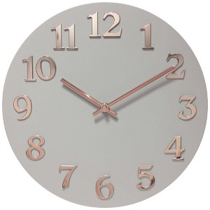 Instantly adorn your wall with our classic 12-inch round modern wall clock. The Vogue Gray & Rose Gold Wall Clock is beautifully decorated with metallic hands that stand against a matte-finished face, giving it that exotic and irresistible appearance. The Vogue wall clock is carefully crafted with large metallic numbers on a matte dial making it extremely easy to read. You no longer have to strain your eyes to tell time. Simplistic in design, yet effortlessly elegant to showcase its unique quality in your home. Our indoor clock boasts an impressive silent movement to ensure you enjoy a quiet and peaceful environment as you sleep or while you work. Packing an impressive design that compliments your home décor making it an ideal choice for bedrooms, study rooms, living rooms, family rooms, kitchen, classrooms, offices, meeting rooms, and dining rooms. Its style features an open face dial and no frame case design to create a contemporary atmosphere in your bedroom or dorm. With three color options, this clock is well suited for virtually any room décor. The new and improved Vogue wall clock comes with precise quartz movements to guarantee accurate time every day. Uses 1 AA Battery (Not Included)
