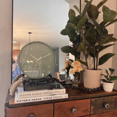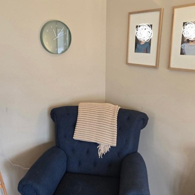 A: The clock has a round shape, adding a classic aesthetic to any room.