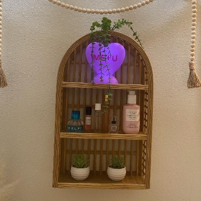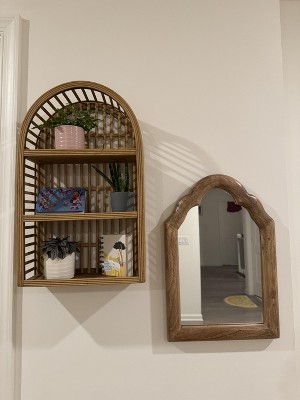 12" x 20" Wood and Rattan Wall Shelf Natural - Threshold™: Modern Vertical Geometric Decor, No Battery Required