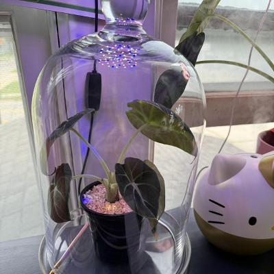 I am an avid collector of cloche bells aka humidity domes and have acquired a few. This humidity dome is perfect for my black velvet. A lot of the other ones that I found on other sites were too narrow, this one is wide for her to have enough space, in the price was very reasonable. I like that it came with a glass base and is extremely sturdy…… I may need another