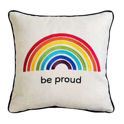 12"x12" 'Love is Love Hearts' Embroidered Pride Square Throw Pillow Rainbow/Cream - Edie@Home: Faux Linen, Velvet Back