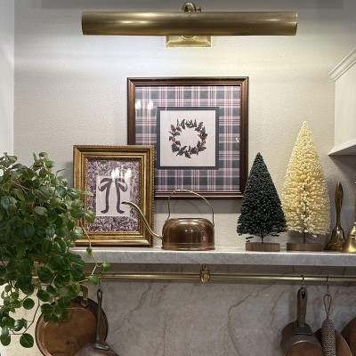 Lend your interiors a warm, festive touch with this Vintage Plaid Matte Wreath Framed Wall Art from Hearth & Hand™ with Magnolia. Encased in a stylish brown polystyrene frame, this wall art showcases a holly and red berries wreath on a green plaid backdrop to give your wall a little personality without overwhelming the decor in the room. The framed wall art comes with a sawtooth back for easy hanging, and the neutral color tones work great with any decor style or color palette.