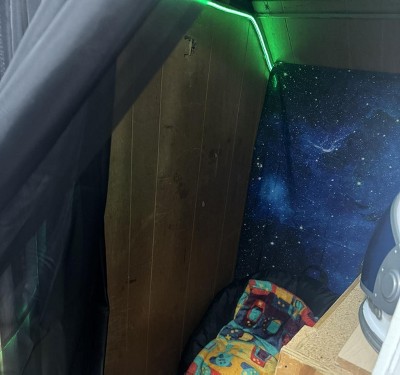 Only comes with 4 adhesives to stick it to. And the remote stopped working within the first 5 minutes of having it, replaced the batteries, and they’re still stuck on one setting.