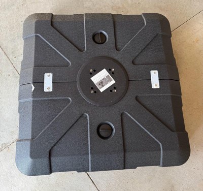 [This review was collected as part of a promotion.] UBO24-Crestlive Products Fillable Patio Offset Cantilever Umbrella Base color black. This Crestlive Product is a heavy-duty outdoor cantilever for umbrellas, which can be filled with water or sand. This base is designed to provide your outdoor experience with its exceptionally easy to use and maintain umbrella base product. It is equipped with a hassle-free water or sand filling system, making it incredibly easy to fill or drain out. When you fully filled with a 1:1 ratio of water and sand, the weight of the base can reach up to 220 pounds or 260 pounds. Which keeps it stable and maintains the umbrella from falling down or over. It is made from HDPE, this base is very durable and weather resistance, ensuring it withstands various climatic conditions. When paired with your favorite outdoor umbrella, it transforms your patio, garden, or poolside into an oasis of shade and comfort. Whether you're hosting a backyard barbeque, relaxing by the poolside, or simply enjoying a sunny day outside, this sturdy base guarantees the utmost best experience. I highly recommend buying one for yourself. Don't miss out on this reliable and stylish base, brought to you by Crestlive Products. This umbrella base is suitable for many different types of products.