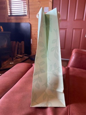 I recently ordered this lovely gift bag, and I couldn't be more pleased! The design is stunning — the green leaf pattern with the mirror ink adds a touch of elegance while still feeling fresh and natural. The 12.79"x9.91"x0.48"size is ideal for larger gifts, and the sturdy construction held up perfectly, even with heavier items. The handles are secure and comfortable to hold, making it easy to carry. It's a versatile bag that works for birthdays, weddings, or any special event. Highly recommend!
