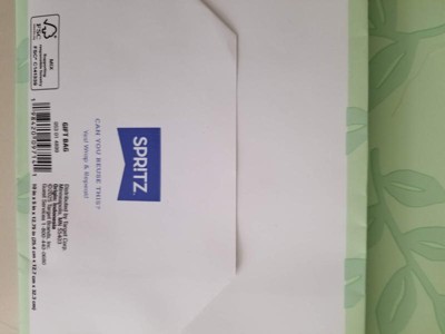 I received these products for free from the Hey, Bullseye™ sampling program in exchange for my honest review. This is a nice, sturdy bag. It has a cardboard insert in the bottom that keeps it standing. The sage green color and pattern are appropriate for many different gifting occasions. The ribbon is more of an ivory color, and is satin. Nice bag to have on hand.