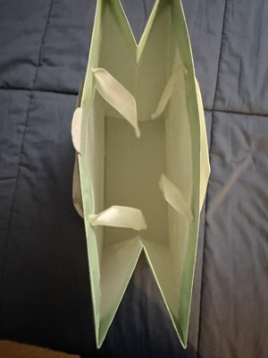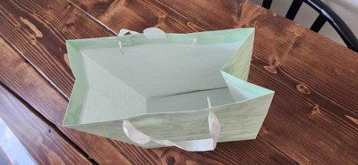 Have a baby or wedding this spring? This is the perfect bag. It would fit a small or medium gift. The color is a soft mint color. I would pair with a pop of color in tissue paper. It would look like a beautiful flower.