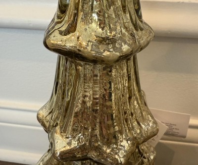 Create an enchanting winter wonderland in your home with the Christmas Small Mercury Glass Tiered Tree from Wondershop™. Crafted of glass, the small tiered tree comes in a champagne hue that lights up from within to bring warmth and a touch of sparkle to your home. Plus, the pedestal base offers easy placement on any flat surface. Since it's battery operated, you can display the mercury tiered tree anywhere to add seasonal cheer.