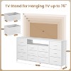 This 63-inch slim-profile dresser maximizes space efficiency, offering ample storage with 12 fabric drawers while fitting neatly in apartments and bedrooms. The sturdy metal frame securely supports up to 75-inch TVs, complemented by built-in LED mood lighting and a convenient charging station with 2 AC outlets and 2 USB ports. Designed for modern living spaces, it combines organizational functionality with contemporary features like ambient lighting and cord management, making it ideal for use as both a TV stand and storage solution in your living room or bedroom.