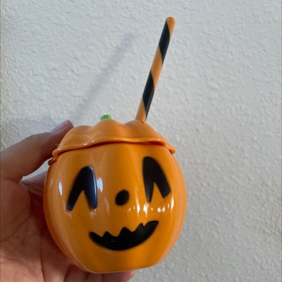 Enjoy refreshing drinks in fun seasonal style with the Halloween Figural Pumpkin Tumbler from Hyde and EEK! Boutique™. This figural tumbler is designed in the shape of a pumpkin with a green stem plus eyes, nose and mouth detailing in black. Plus, it also comes with an orange-and-black straw for convenient sipping. Made of plastic, this BPA-free tumbler is suitable for cold beverages only and can be tossed in the top rack of the dishwasher to clean.