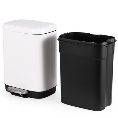 12L (3.2-gallon) white stainless steel trash can is crafted from high-quality, durable material, featuring a smooth, easy-to-clean surface that maintains its gloss and elegance¡ªmaking it a stylish addition to kitchens, living rooms, or bathrooms. Hands-free operation is enabled via a convenient step-on foot pedal, allowing quick, effortless lid opening¡ªideal for busy kitchens, offices, or homes to enhance sanitation and daily ease of use. Designed for quiet operation, it includes ergonomic metal pedals and a well-sealed soft-close lid that closes slowly, preventing unpleasant odors and creating a clean, comfortable environment suitable for multiple settings. Lightweight and portable, this compact rectangular trash can fits easily into kitchens, bedrooms, bathrooms, or offices, offering versatile, practical storage without occupying excessive space. It also comes with a removable raised inner bucket with convenient handles, simplifying waste disposal and cleaning to improve user-friendliness. Dimensions: Overall size: 11.8 inches (length) ¡Á 9.4 inches (width) ¡Á 16.5 inches (height) Capacity: 12 liters (3.2 gallons) Material thickness: 0.4mm high-quality stainless steel Step pedal size: 4.3 inches ¡Á 2.9 inches Lid opening angle: 80 degrees Removable inner bucket: 11 inches (height) ¡Á 8.7 inches (diameter), with 1.6-inch handle height Distance from base to lid (closed): 16.5 inches What You Get: 1 white stainless steel trash can with brushed finish, 1 removable raised inner bucket with handles, user manual, 4 anti-slip rubber base pads, and a small pack of replacement screws. After-Sales Service: We provide detailed user manuals to guide setup and maintenance. If any parts are missing or damaged upon delivery, free replacements are arranged promptly. Our customer support team responds to inquiries within 24 hours, offering tips on cleaning the brushed surface, maintaining the soft-close lid mechanism, and using the step pedal effectively, ensuring a hassle-free experience.
