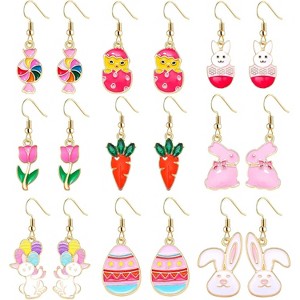 12-Pair Easter Bunny Earrings | Enamel Rabbit & Colorful Egg Dangle Set