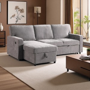 120" Upholstery Sleeper Sectional Sofa with Storage, USB & 2 Cup Holders