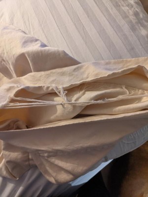 Wow, this definitely was not a Target experience.... First the sheets arrived in a nutter cookie box. There was nothing on the outside of the box indicating it was a Target delivery. Second, when I opened the package, there was a rancid order that smelled like vomit. I washed them twice with no luck. They looked nice, but I will not use them. So disappointed as these are the most expensive sheets I have purchased....