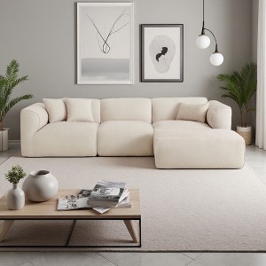 122.1" Velvet L-Shaped Modular Sectional Sofa with Ottoman