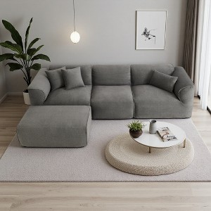 122.1" Velvet L-Shaped Modular Sectional Sofa with Ottoman