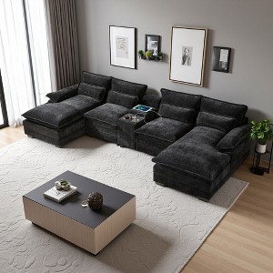 123" Chenille U-Shaped Sectional Sofa with Double Chaise & USB
