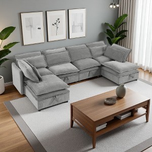 124" U-Shaped Modular Sectional Sofa Bed with Storage