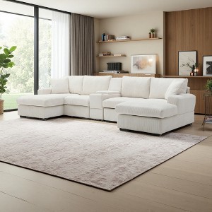 - Multifunctional Sectional Couch: This U-shaped cloud couch offers a built-in storage console and cup holders, allowing you to store remotes and keep drinks within reach¡ªensuring both convenience and comfort while you relax.