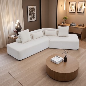 128" Boucle Teddy L-Shaped Sectional Sofa with 2 Throw & 2 Lumbar Pillows