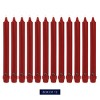 A rich and sophisticated color, our unscented Red taper candle adds a dramatic touch to your home decor. These twelve-inch candles have a bevelledbase to provide stability and support needed for most taper holders, are virtually drip free, and have a burn time of up to ten hours each.