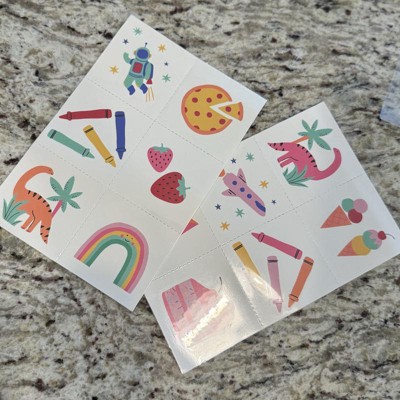 [This review was collected as part of a promotion.] How stinking cute are these!? My friends kids are obsessed with temporary tattoos and I picked these up for my sons birthday party to have at one of the stations for older kids to play around with. The size of the tattoos is a little large so they will definitely be used on arms or legs rather than on hands. But I think these are such fun designs and will be cute to see the kids running around with! I received an incentive to write this review.