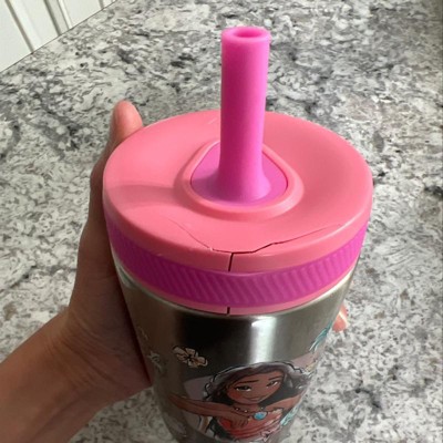 This fun straw tumbler will keep kids hydrated without any fuss! You can prevent messes and spills with a cup that won't leak: the attached straw has a valve that allows easy access to water, but won't drip when the tumbler is tipped over. A screw-on lid means a secure fit, and vacuum insulation will prevent condensation from forming on the outside of the cup, in addition to keeping drinks cold. Perfect for kids age 3 and up, this tumbler features Disney Princess artwork to make hydration fun.