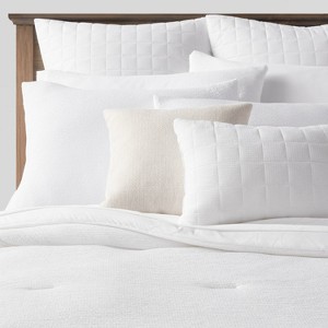 Add a soft, subtle dimension to your bedroom with the Fuller Micro-Texture Comforter & Sham Bedding Set from Threshold™. The 12-piece bedding set includes a comforter finished in a solid hue with a micro-textured look, along with pillow shams, pillowcases, sheet sets and a bedskirt to give you loads of options for a cozy bedroom. For added convenience, the multi-piece comforter bedding set is crafted from a lightweight fabric that is machine-washable for easy cleaning, and the fitted sheet with all-around elastic accommodates mattresses up to 16 inches deep.