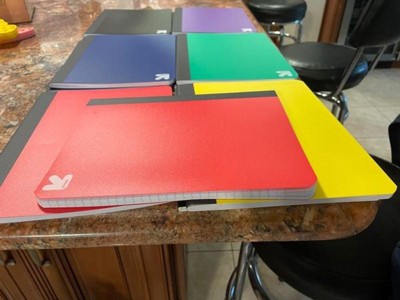 These notebooks are not the typical spiral bound notebooks that I would buy but I do like that the pages will not rip out as easily. The notebooks have a plastic cover that is a little see through for the lighter colors and my girls liked writing on their notebook covers in Sharpie. However, because they are not spiral bound, they don't lay flat, which could be drawback for some.